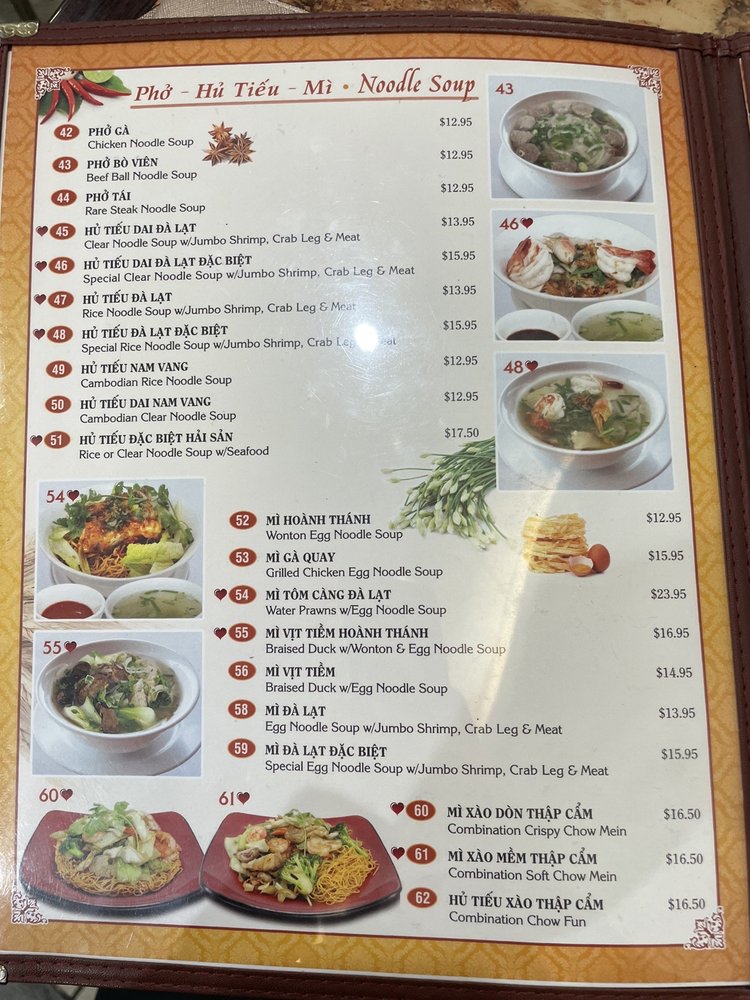 Dalat Restaurant, a Vietnamese gem located in San Jose, offers a diverse menu with options for all preferences. The restaurant provides delivery, takeout, and reservations, along with vegan and limited vegetarian choices. Despite some service and parking challenges, customers praise the consistent and delectable food. The combination tapioca noodles and Vietnamese iced coffee are standout favorites, showcasing the authenticity and quality of the dishes. The dry clear noodles with special sauce and crispy pork fat are highly recommended choices. With generous portions and flavorful broth, Dalat Restaurant is a must-visit for a comforting bowl of hu tieu noodles. This nostalgic spot, with its cozy atmosphere, is perfect for a quick lunch or dinner. Don't miss out on this hidden gem for an authentic Vietnamese dining experience.
